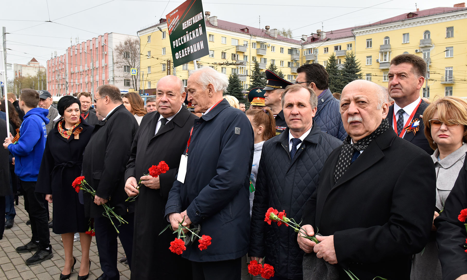 Не многие события в истории человечества могут сравниться с Победой Советского народа в Великой Отечественной войне 1941–1945 годов, когда в жестком единоборстве с врагом весь народ, как один, независимо от своей национальности и вероисповедания, поднялся на защиту Отечества, совершил подвиг, отстояв не только свою свободу и независимость, спас мировую цивилизацию от «коричневой чумы», а главное, сохранил свое право на высокое звание Человека. Сколько бы ни минуло лет с той Великой войны, мы всегда будем отдавать почести солдатам Великой Отечественной войны. Цветы к вечному огню возложила делегация Брянской области.