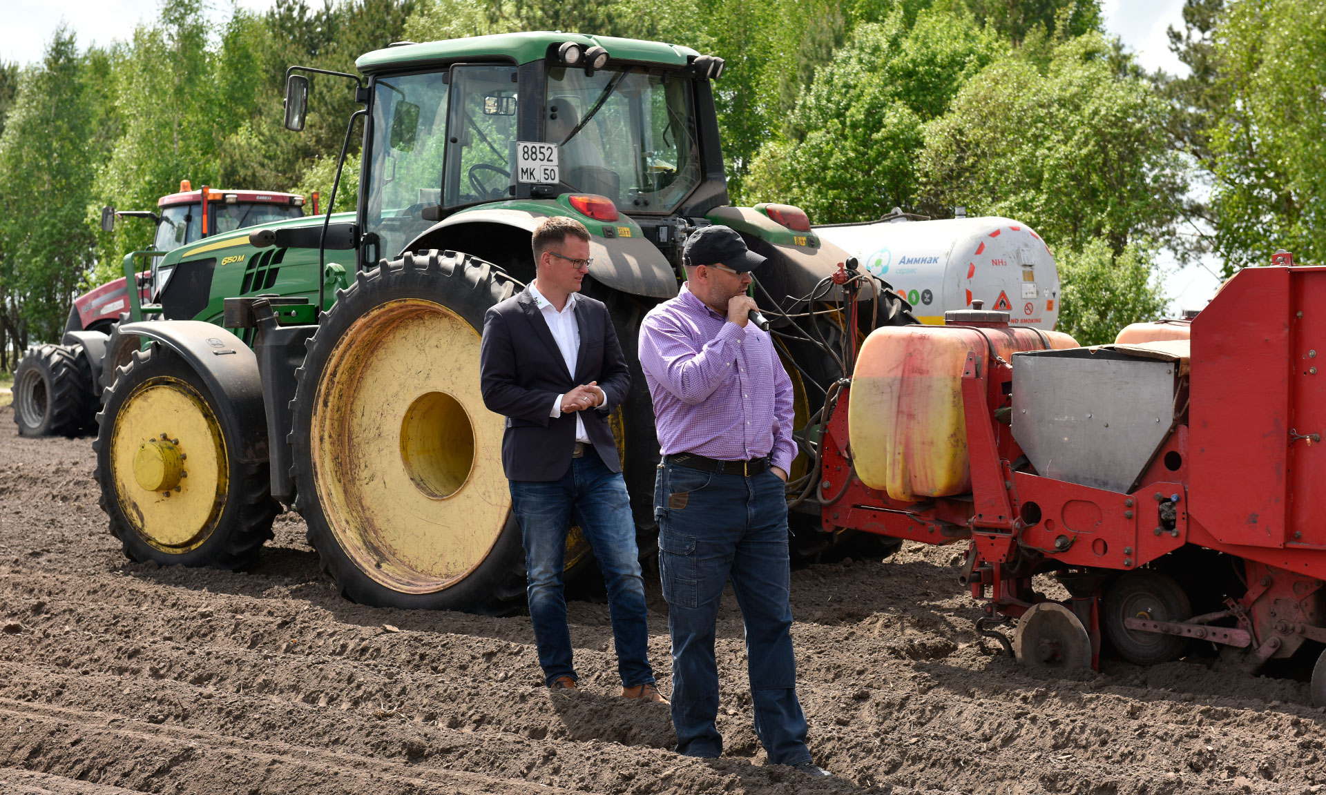 Представитель фирмы ООО «Агри 2.0 Точное земледелие» Кристиан-Де Фриз более подробно рассказал о системе точного земледелия и о тех результатах, которые дает ее использование. Так, благодаря системе параллельного вождения, основанной на использовании сигнала спутниковой навигации, движение сельхозтехники по полю осуществляется с точностью до 2 см и картофель высаживается точно в центр гребня, что является важным условием развития полноценного растения.