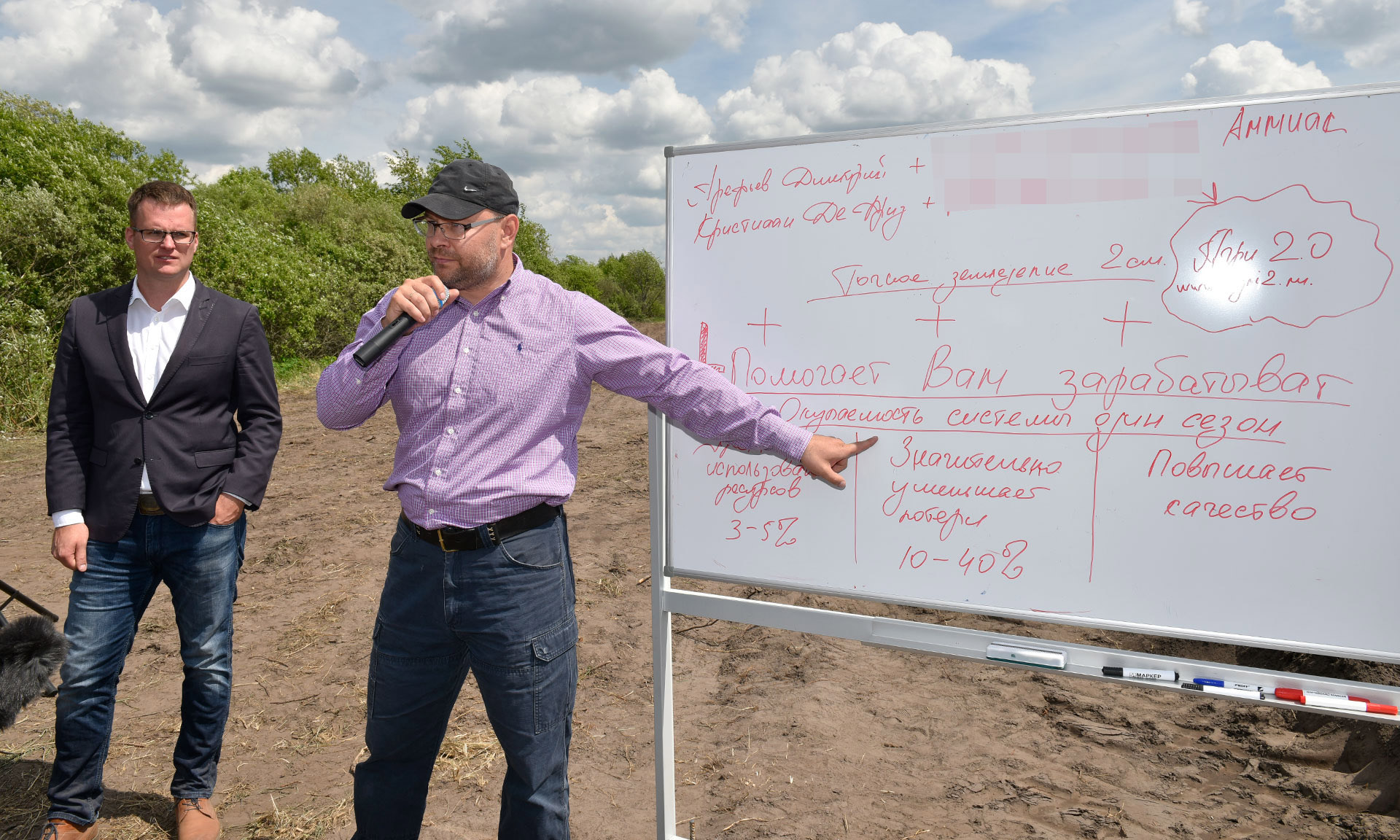 — Когда мы сегодня сравниваем европейского фермера и российского, то удивляется больше европейский, потому что ни в одной стране нет таких возможностей, которые есть сегодня в России. Не может сегодня на Западе сделать человек рывок за 5–6 лет и соответствовать лучшим технологиям, которые сегодня есть в мире. Мы провели сегодняшний семинар на базе успешного хозяйства, где применяется система точного земледелия, где вносится безводный аммиак. Три миллиона тонн в Америке ежегодно вносится безводного аммиака, при этом 2,5 млн тонн производится в России. То есть мы его производим, но не используем! Дмитрий Добронравов первый в Брянской области стал применять эту технологию. В этом году уже другие наши хозяйства начали ее использовать, но пока в малом количестве. Если мы не будем проводить такие семинары, учить, как быть успешным, у нас не будет результата. У нас сегодня большой резерв в животноводстве, мы 1 млн гектаров обрабатываем земли — 600 тысяч гектаров находится под посевами и 400 тысяч — для того, чтобы кормить животных, а их в области 380 тысяч, на одну голову получается полтора гектара, а должно быть на один гектар пять голов скота. А у нас есть хозяйства, где 200 голов скота и две тысячи гектаров земли, на которой ничего не делается. А чтобы у всех были такие поля, соблюдалась такая технология, такая техника, как у Добронравова, для этого нужно учиться и работать, потому что от каждого из нас зависит, что будет завтра.