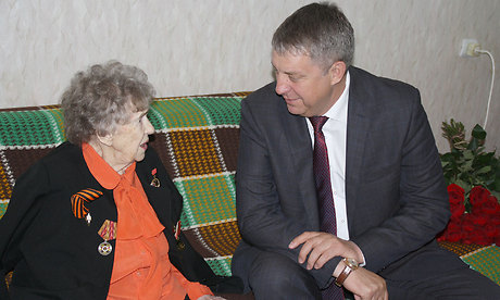 17 мая Губернатор Александр Богомаз, ректор Брянского государственного университета Андрей Антюхов, первый заместитель директора департамента образования Брянской области Татьяна Кулешова навестили Александру Алексеевну Бычкову, которой в марте исполнилось 97 лет.