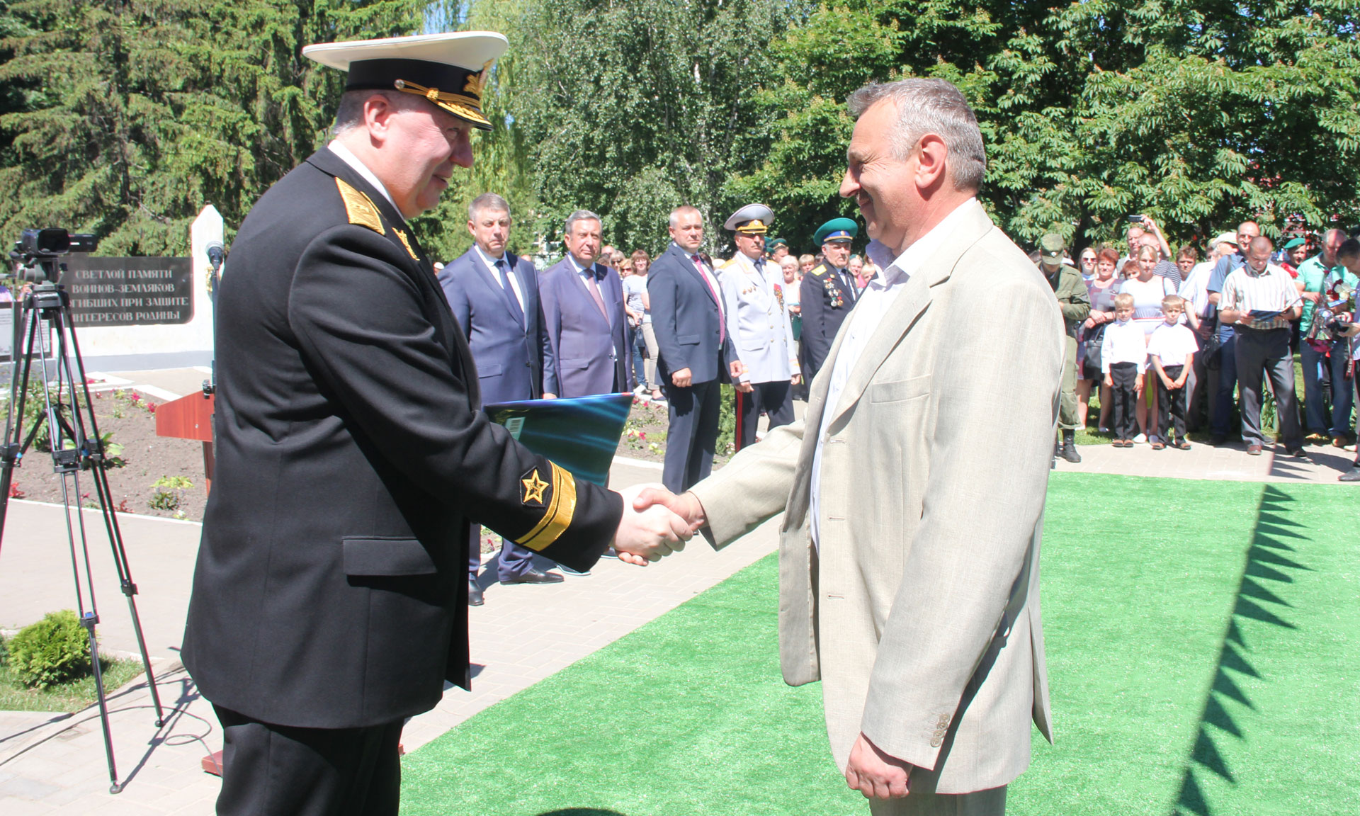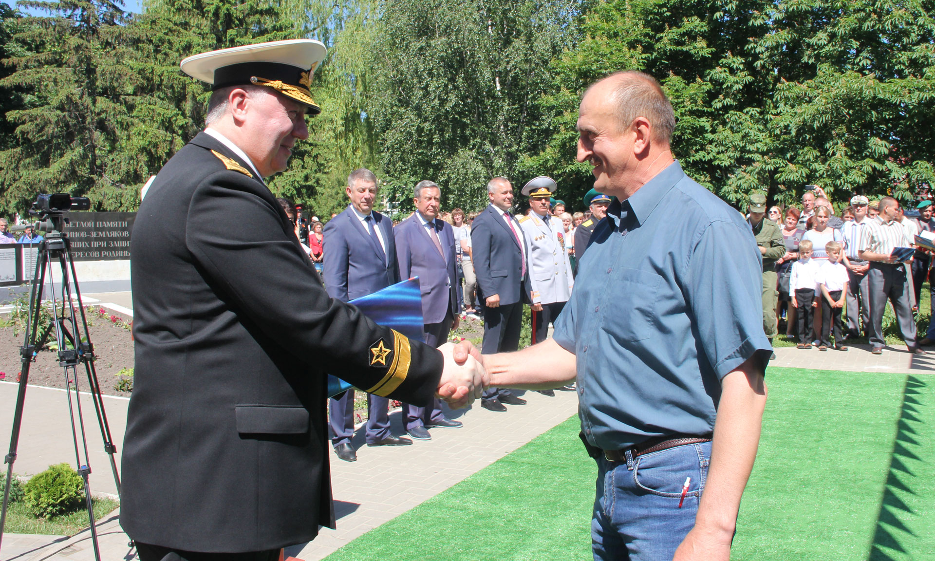 Контр-адмирал вручил награды действующим сотрудникам Пограничного управления ФСБ России по Брянской области, памятные адреса ветеранам пограничных органов, а также Благодарственные письма тем, благодаря материальной поддержке которых был установлен этот памятный знак. Благодарственные письма были торжественно вручены депутату Государственной Думы Федерального собрания РФ 7 созыва Валентину Субботу, генерал-майору полиции в отставке Александру Подольному, главе администрации Стародуба Дмитрию Винокурову, генеральному директору КФХ «Пуцко» Александру Пуцко, генеральному директору КФХ «Тамилин» Николаю Тамилину, председателю колхоза им. Правды Павлу Пыко, ингдивидуальному предпринимателю Михаилу Ещенко, начальнику Стародубского ДРСУч АО «Брянскавтодор» Евгению Захаренко, директору фирмы, проводившей проектирование и монтаж памятного знака, Максиму Егельскому.