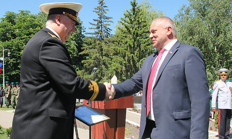 — От себя лично и от имени правительства Брянской области от всей души поздравляю вас с юбилейным праздником — столетием образования пограничных войск России. 100 лет назад, когда в нашей стране была сложная политическая ситуация, проливалась кровь ее граждан, было принято решение о создании отдельного рода войск. Прошли годы, менялась страна, распался Советский Союз, осталась суверенная Россия. Но цели и задачи, которые выполняют пограничники, по-прежнему неизменны: защищать рубежи нашей Родины. И правильно сказали только что выступившие здесь дети, что наша граница на замке. Вы те люди, которые делают все, чтобы наша граница была на замке, чтобы безопасность нашего государства была в надежных руках. И сегодня она действительно в ваших надежных руках. В этот праздничный день я хочу сказать слова огромной благодарности начальнику пограничного управления по Брянской области, контр-адмиралу Сергею Николаевичу Станкевичу, который очень многое сделал для того, чтобы профессионализм сотрудников ФСБ рос из года в год. И в том, что брянский участок границы сегодня надежно укреплен, — заслуга руководителя службы и ее сотрудников. Огромное вам спасибо.