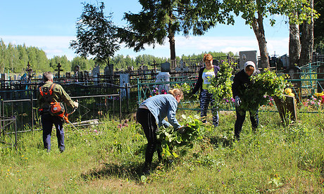 В Красногорском районе поддерживают тот порядок, что был наведен ранее. Во время общеобластного субботника всем миром люди вышли потрудиться, чтобы окультурить территории кладбищ и мест воинских захоронений. На кладбищах в Красной Горе и поселениях района выкашивается сорная растительность, вырубается отросший кустарник. В наведении порядка на погостах активно принимают участие работники администраций района и сельских поселений, сотрудники учреждений, предприятий и организаций, местные жители.