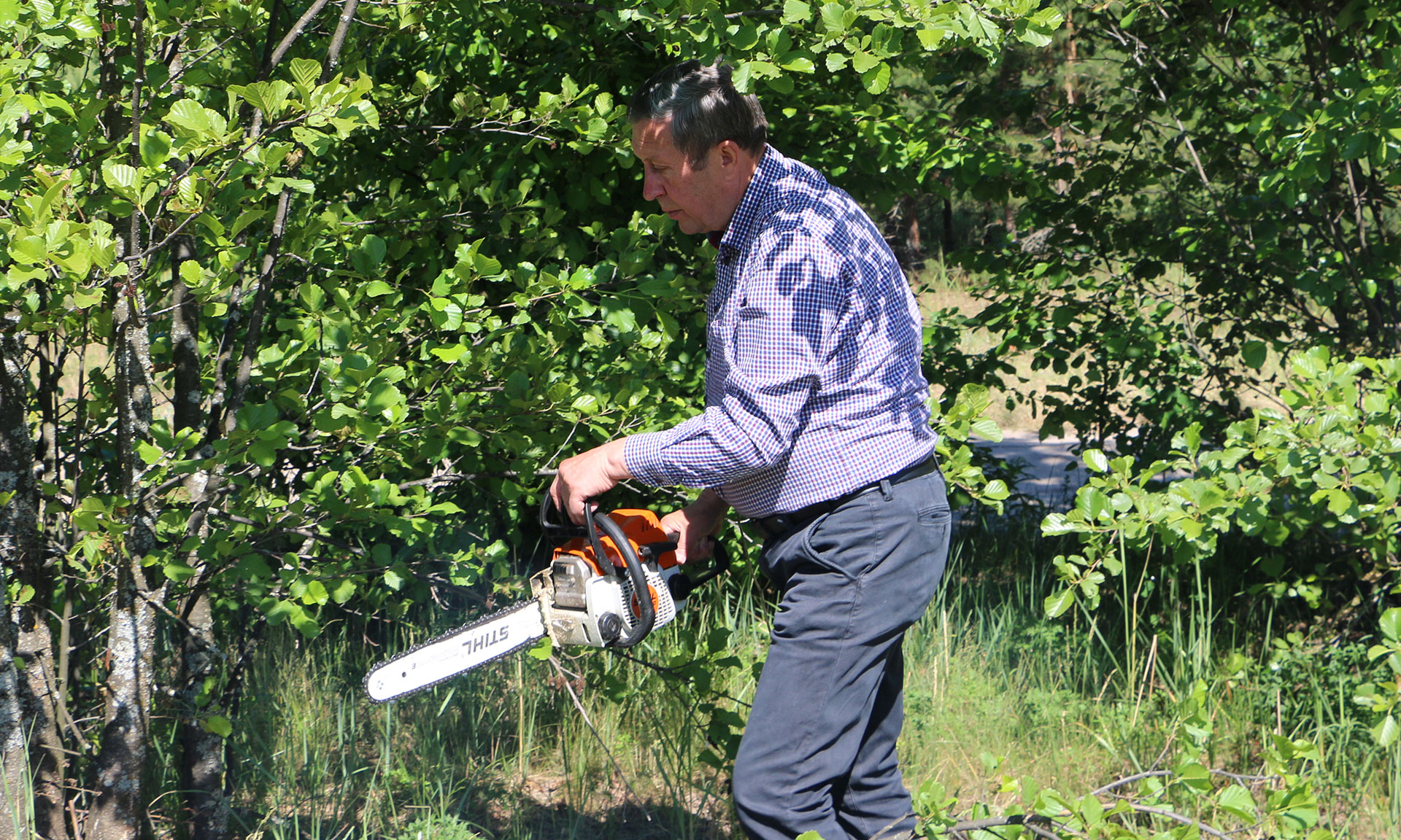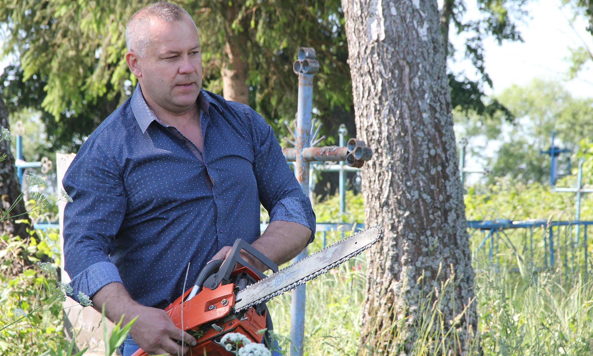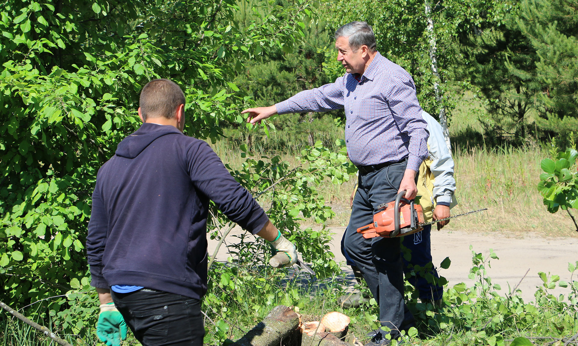 И сегодня, вооружившись бензопилами, Александр Богомаз и Валентин Суббот принялись за дело. Участники субботника выпиливали молодую поросль, убирали ветки, скашивали траву.