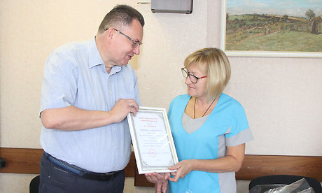 28 июня в Брянском областном клинико-диагностическом центре поздравляли старшую медицинскую сестру центра амбулаторно-поликлинической хирургии Любовь Ивановну Минину, которой присвоено высокое звание «Заслуженный работник здравоохранения».