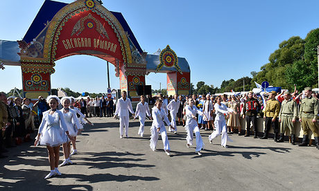 — Уважаемый Александр Васильевич, уважаемый почетный президиум, дорогие земляки, гости из ближнего приграничья, из других регионов, все кто прибыл сегодня, приехал, прилетел на нашу замечательную ярмарку! Собрались вы на таком молитвенном священном месте! Только сегодня я узнала о том, что, оказывается, освобождение Брянска начиналось именно отсюда, с Андреевского луга. Все здесь священно, все здесь наполнено святостью, молитвенностью и какой-то нашей русской, брянской традиционностью. Замечательно, что каждый год на ярмарке так много людей, кто-то пришел себя показать, достижениями похвалиться, удалью, умом, творчеством, кто-то — прикупить товар и, конечно же, все приходят сюда с радостным настроением.