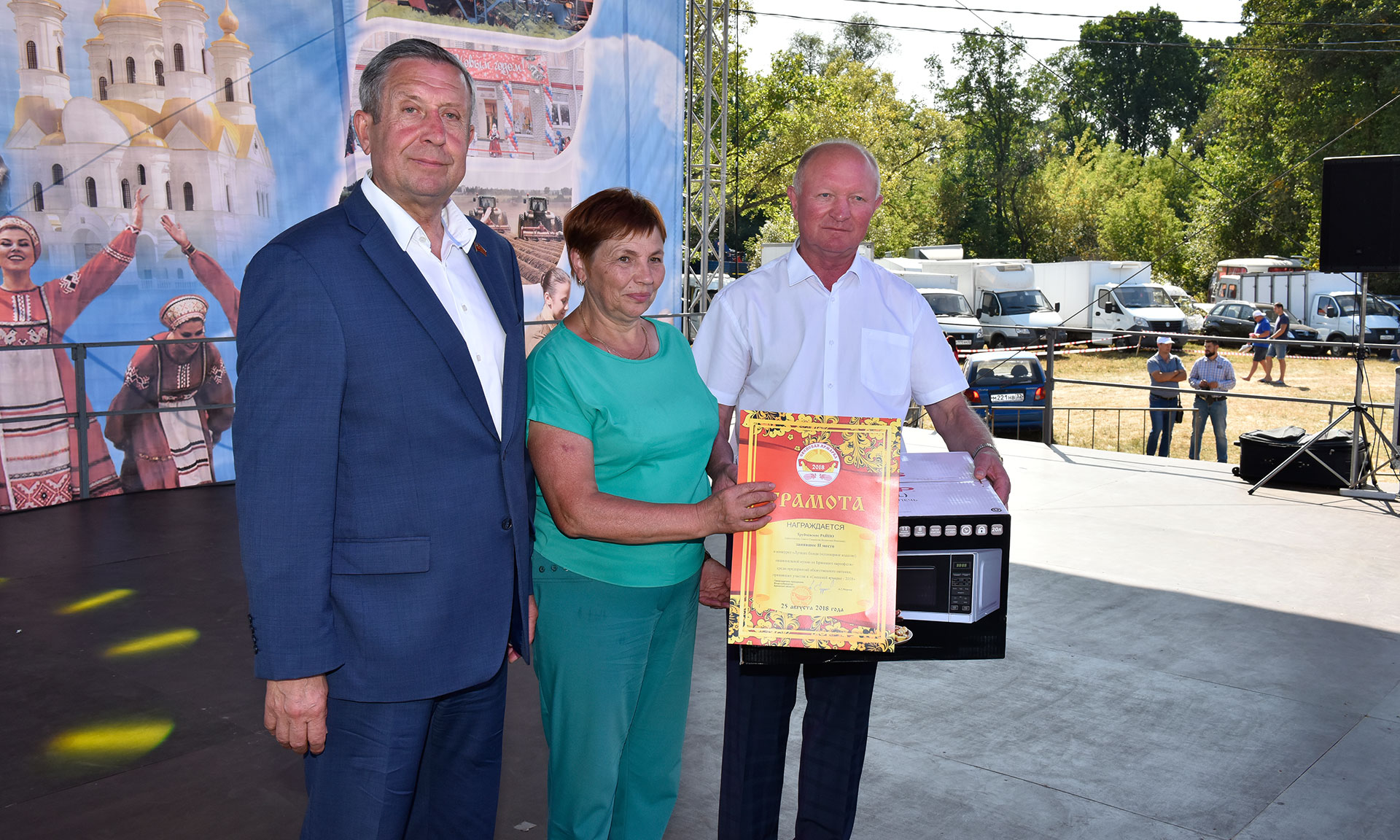 Победителей в номинации «Лучшее блюдо (кулинарное изделие) национальной кухни из Брянского картофеля» наградили председатель Брянской областной Думы Владимир Попков и директор департамента сельского хозяйства Брянской области Борис Грибанов.