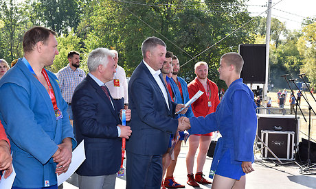 Победителей международных соревнований по самбо наградили Губернатор Брянской области Александр Богомаз и президент Всероссийской и Европейской федераций самбо Сергей Елисеев. Самбистам вручены медали, грамоты и денежные призы.