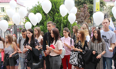 В память всех жертв терроризма была объявлена минута молчания, и в небо взлетели белые шары.