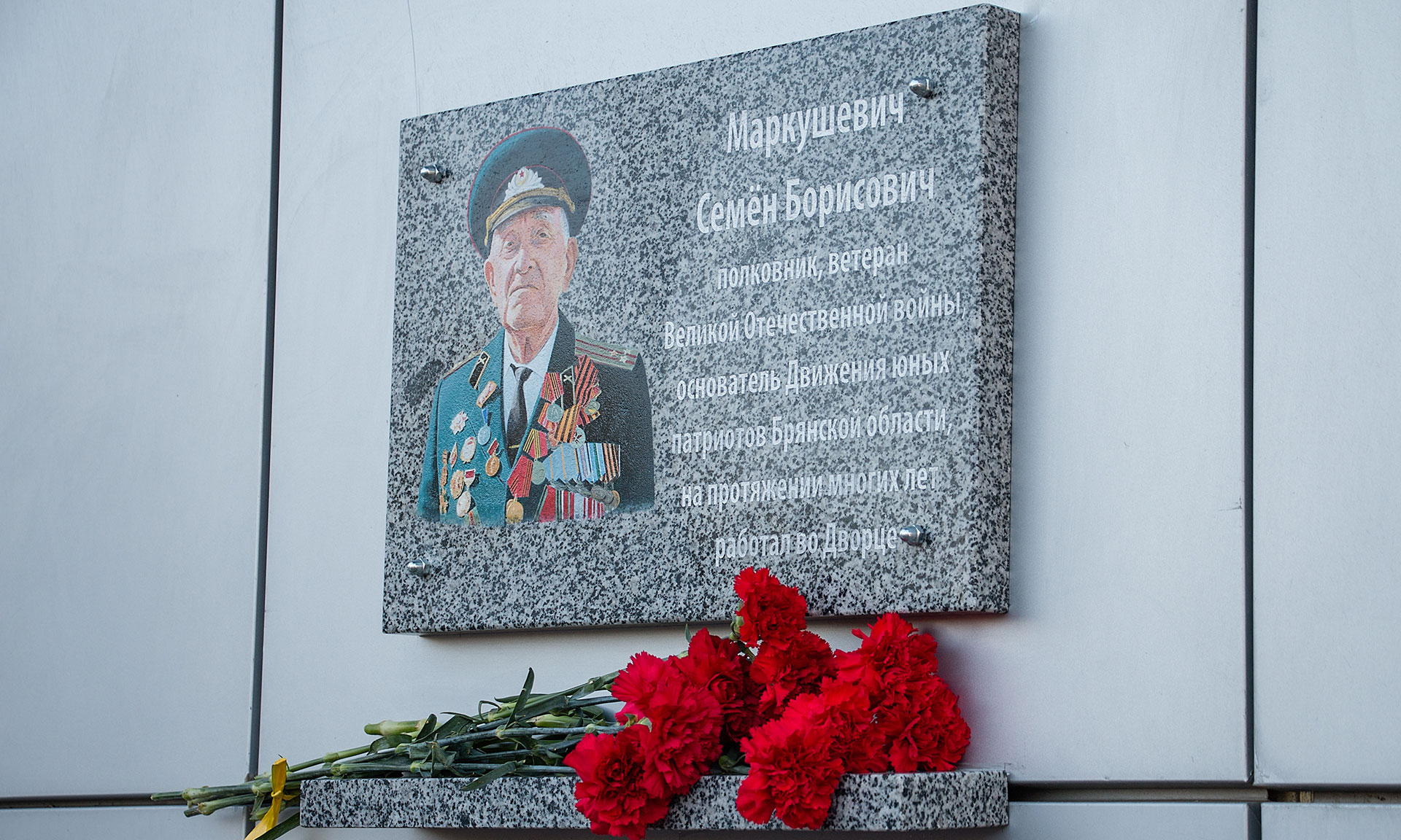 В канун праздничной даты — 75-летия освобождения Брянщины от немецко-фашистских захватчиков, 5 сентября у Губернаторского Дворца имени Ю. А. Гагарина прошел митинг, посвященный открытию мемориальной доски на здании Дворца с целью увековечения памяти Семена Борисовича Маркушевича — полковника, ветерана Великой Отечественной войны 1941–1945 годов, основателя Движения юных патриотов Брянской области, на протяжении многих лет работавшего во Дворце.