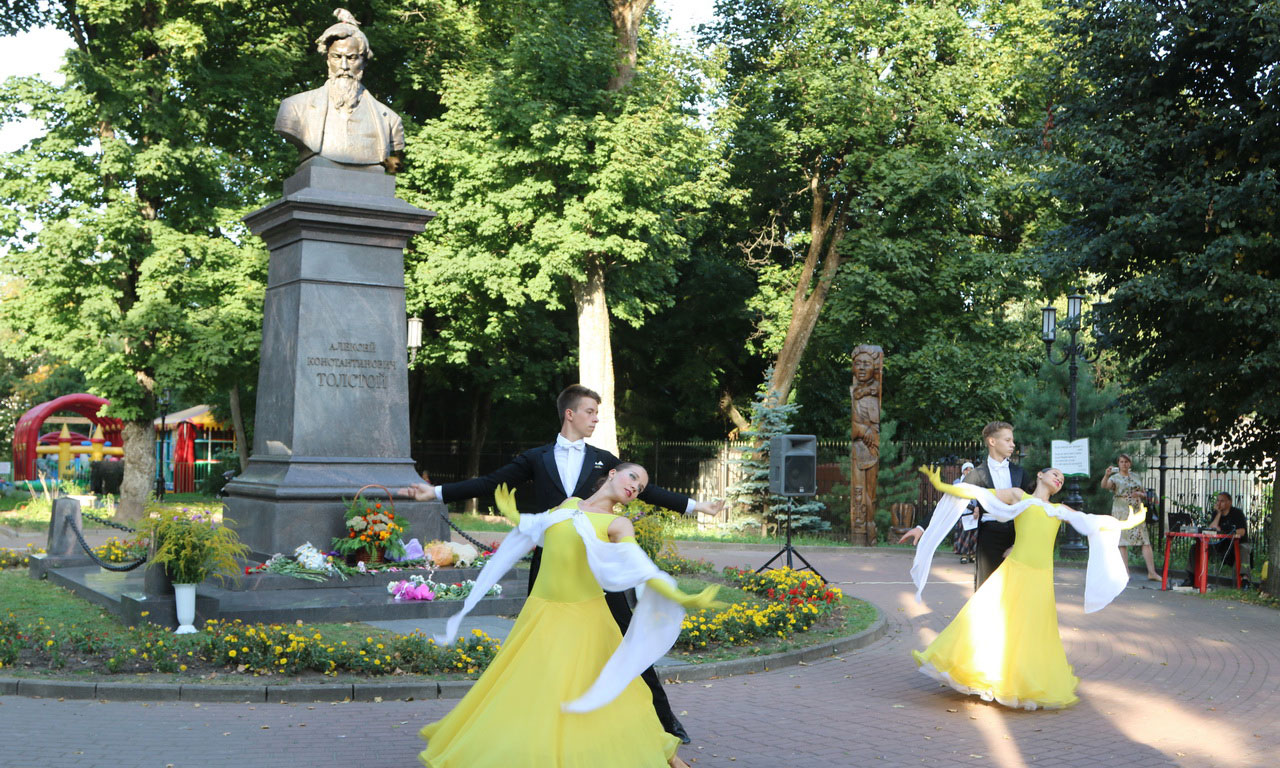 Главным действующим лицом праздника, конечно, стала поэзия Алексея Константиновича. Его стихи звучали как в исполнении любителей и знатоков его творчества, так и в исполнении артистов брянских театров. Руководитель Брянской областной общественной писательской организации «Союз писателей России» Владимир Сорочкин вместе со своими товарищами по организации — поэтами и прозаиками — заново открывали для собравшихся мир поэзии Толстого, декламируя как стихи самого поэта, так и собственные произведения о знаменитом земляке, о парке, носящем его имя, о природе родного края, которую также воспевал в своих стихах Толстой, об эпохе, в которую жил Алексей Константинович. Почувствовать её, ту самую эпоху, помогли выступления народного ансамбля бального танца «Таис» и лауреата Всероссийского конкурса вокалистов имени А. Д. Вяльцевой Людмилы Липской, которая исполнила восхитительные романсы конца XIX — начала XX веков.