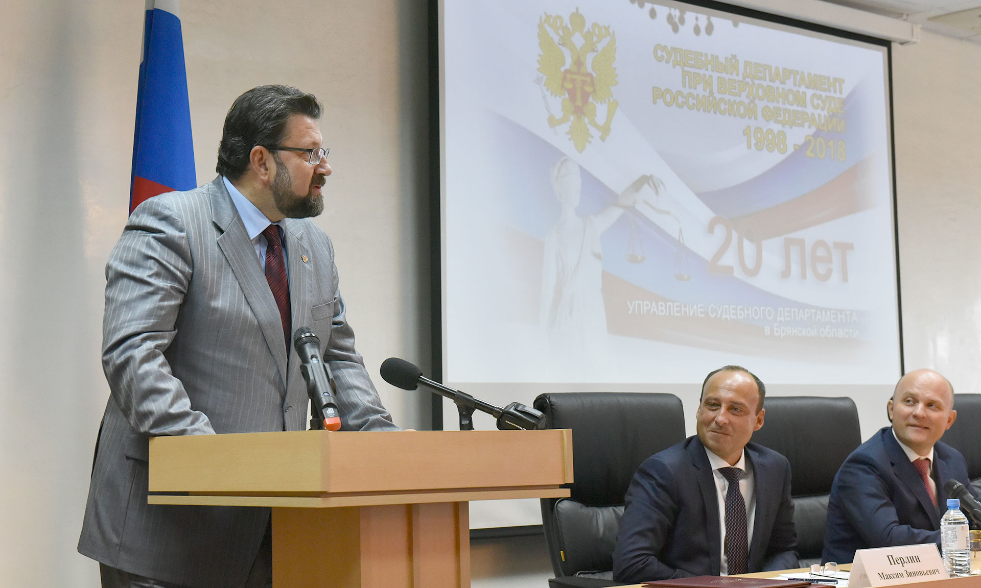 От имени Губернатора Брянской области Александра Богомаза, Правительства Брянской области и от себя лично коллектив управления Судебного департамента в Брянской области со знаменательной датой поздравил заместитель Губернатора Сергей Сергеев. Он сказал: