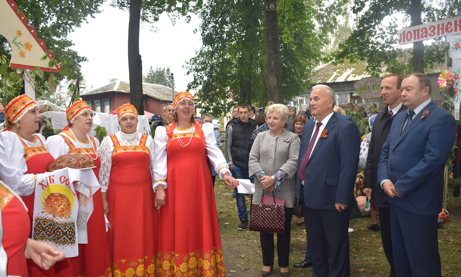 После этого праздник продолжился в городском парке. А здесь уже шумела настоящая ярмарка! Звуки детского духового оркестра из Овинчского сельского Дома культуры зазывали гостей к подворьям. Здесь их встречали работники культуры, наряженные кто в национальные одежды, кто в воинскую форму.