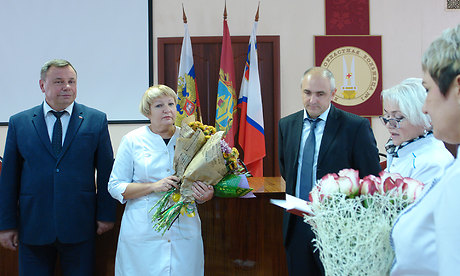 — Уважаемые коллеги! Сегодня мы собрались здесь для вручения заслуженной награды почетное звание «Заслуженный врач Российской Федерации» заведующей пульмонологическим отделением ГАУЗ «Брянская областная больница № 1» Кулешовой Ларисе Евгеньевне.