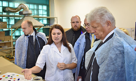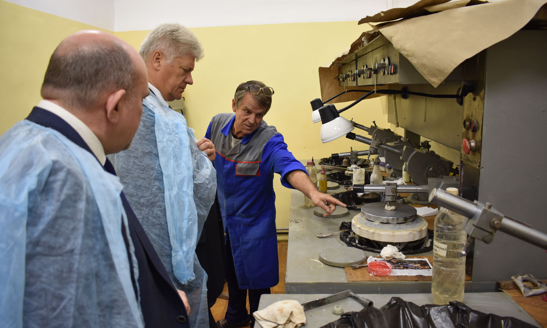 Александр Жигунов и глава администрации Дятьковского района Павел Валяев встретились с руководством предприятия, ознакомились с технологией производства и ассортиментом выпускаемой продукции. Во встрече также приняли участие представители департамента промышленности, транспорта и связи, департамента образования и науки Брянской области, ФГБОУ ВО «Брянский государственный технический университет», ГАПОУ «Брянский техникум энергомашиностроения радиоэлектроники имени Героя Советского Союза М. А. Афанасьева».