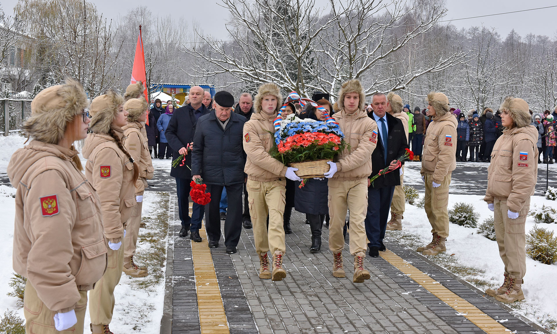 Завершился митинг возложением цветов к мемориальной доске, посвященной Федору Журавлеву, а также цветов к памятнику военнослужащим, героически погибшим, выполняя свой долг, при защите национальных интересов Российской Федерации в Сирийской Арабской Республике.