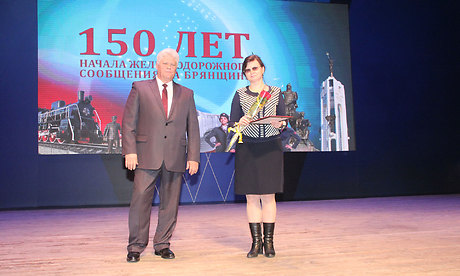 За многолетний добросовестный труд и профессионализм, а также в связи со 150-летием начала железнодорожного движения на участке Орел-Брянск Почетной грамотой Губернатора Брянской области награждены: Людмила Игуменова — врач-акушер-гинеколог негосударственного учреждения здравоохранения «Отделенческая больница на станции Брянск-II», Наталья Терехова — дежурный помощник начальника вокзала «Брянск-Орловский», Сергей Шершнев — осмотрщик-ремонтник вагонов эксплуатационного вагонного депо «Брянск».