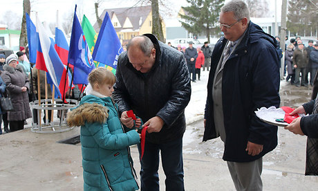 После этого, от местного отделений Партии они вручили директору ДК Олесе Кабановой подарки — лазерный проектор и памятную табличку об открытии учреждения культуры.