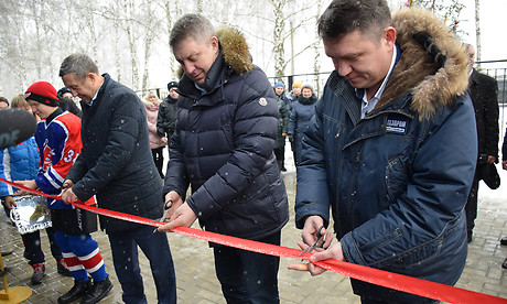 Символический ключ директору физкультурно-оздоровительного комплекса Елене Володиной вручил начальник Управления площадных объектов «Газпром инвестгазификация» Павел Фомин. После церемонии торжественного открытия, директор Елена Володина провела небольшую ознакомительную экскурсию для почетных гостей по новому ФОКу. Затем почетные гости перешли на ледовую арену, где уже собрались сотни людей. Как только зазвучала песня «Герои спорта», которую исполнял учащийся Сачковичской школы Максим Сидоренко, на лед выехали школьники школ района и игроки юношеской хоккейной команды «Авангард» Климово.