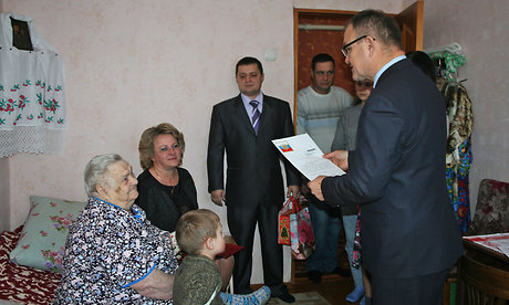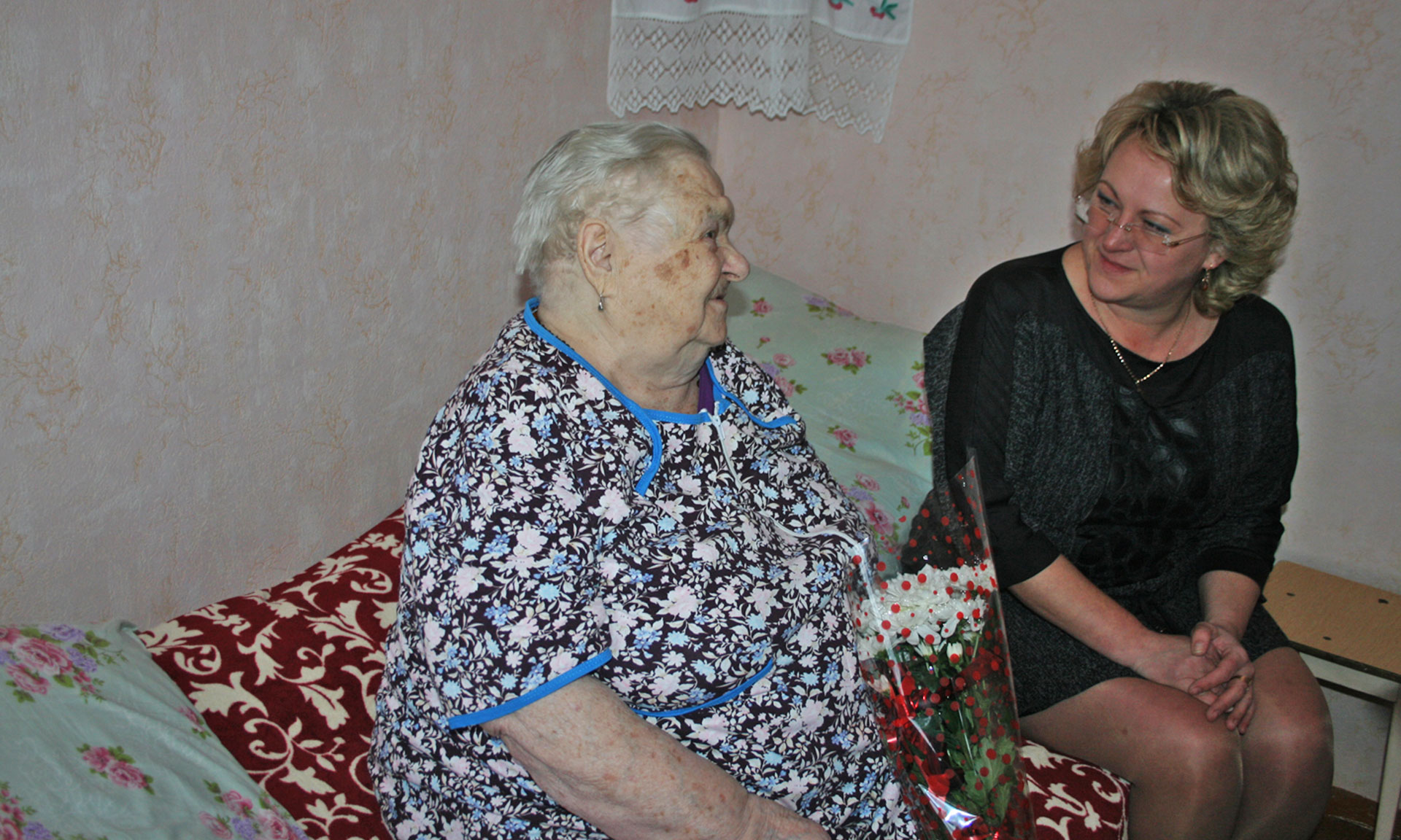 В этот же день Николай Щеглов и Людмила Лужецкая поздравили с 95-летием Пелагею Ивановну Матюшину, жительницу деревни Масловка, уроженку деревни Непряхино. У именинницы большое наследие: трое детей, семь внуков, семь правнуков. Она поделилась тяжелыми воспоминаниями об оккупации, о послевоенных годах. Тем не менее, как призналась Пелагея Ивановна, считает себя счастливым человеком.