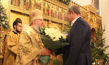 — Мы всегда благодарим ушедший год за то, что вместе мы многое сделали на Брянщине. Мы загадываем желания и стремимся в Новом году сделать еще больше. Дорогой Владыка! Я искренне поздравлю Вас с этим великим праздником. Дай Бог здоровья, дай Бог Вам сил! Сегодня я побывал в Успенском соборе нашего монастыря. Глаз радует эта святыня! Я думаю, что этим летом мы освятим его вместе с вами, вместе со Святейшим Патриархом, и не только этот храм. Митрополия имеет сегодня укрепление, мы за два года построили Кафедральный Собор в Клинцах, где сегодня ведутся отделочные работы.