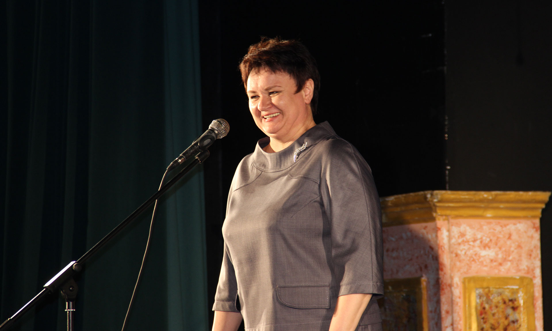 — Дорогие друзья, дорогие ребята, учителя, актеры! Поздравляю вас с праздником! Прекрасно, что именно в Год театра, именно в Брянской области происходят такие яркие события в школах области по развитию театрального искусства! И сегодня мы увидим выступления лучших школьных театральных коллективов. Желаем всем детям, кто будет выступать на сцене, искры Божией, радости, а нашему жюри — найти самых одаренных и самых талантливых.