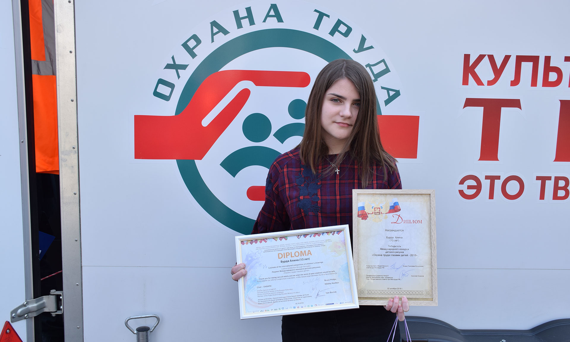 В ходе мероприятия заместитель Губернатора Николай Щеглов вручил грамоты и подарки Алине Бурде, победительнице Международного конкурса «Охрана труда глазами детей», ученице 8 класса МБОУ «Климовская средняя общеобразовательная школа № 1».