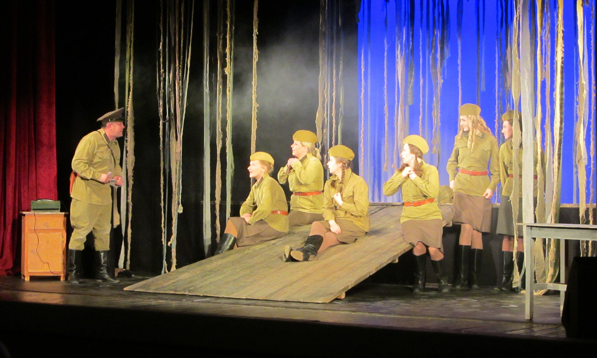 В спектакле разворачивается история пяти девушек-зенитчиц, вступивших во главе со своим командиром старшиной Васковым в смертельную схватку с отрядом отборных немецких диверсантов в мае 1942 года. Хрупкие девушки противостояли крепким, обученным убивать мужчинам и ценой своих жизней одержали победу над врагом.