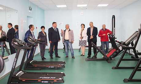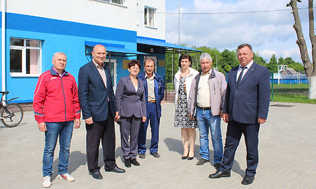 Следующим объектом рабочей поездки стал ФОК, построенный в Комаричах. Здесь к Владимиру Оборотову присоединились начальник управления физической культуры и спорта Брянской области Валерий Корнеев, специалист по ФК и спорту администрации Комаричского района Василий Бушин, директор Комаричской ДЮСШ Леонид Маркин.