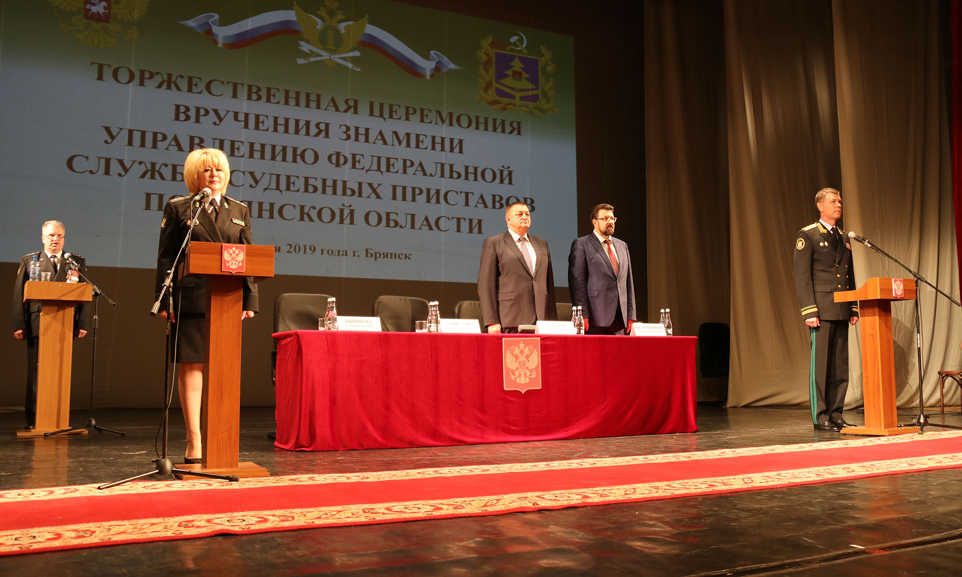 30 мая в Брянском областном театре драмы имени А. К. Толстого состоялась торжественная церемония вручения Знамени Управлению Федеральной службы судебных приставов по Брянской области.