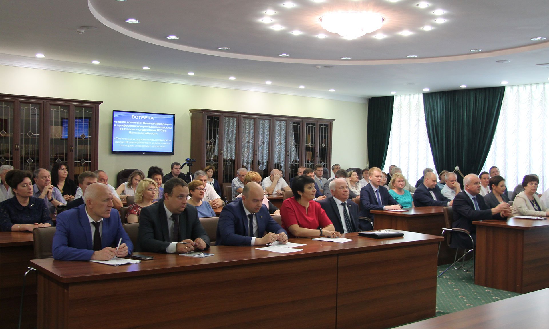 В рамках встречи с профессорско-преподавательским сообществом региона был заслушан вопрос о состоянии и перспективах развития вузовской науки, взаимодействии с реальным сектором экономики региона.