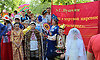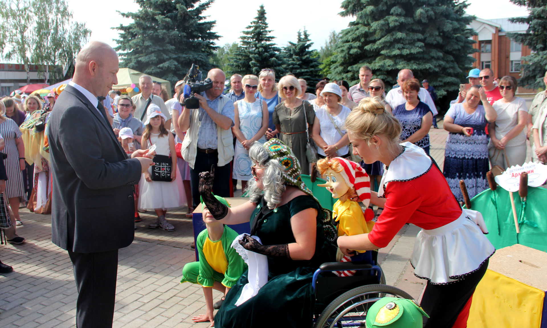На центральной улице Овстуга делегацию почетных гостей во главе с заместителем Губернатора Брянской области Александром Коробко встречали театральные коллективы — победители и участники театральных фестивалей, проводимых в Брянской области в Год театра.