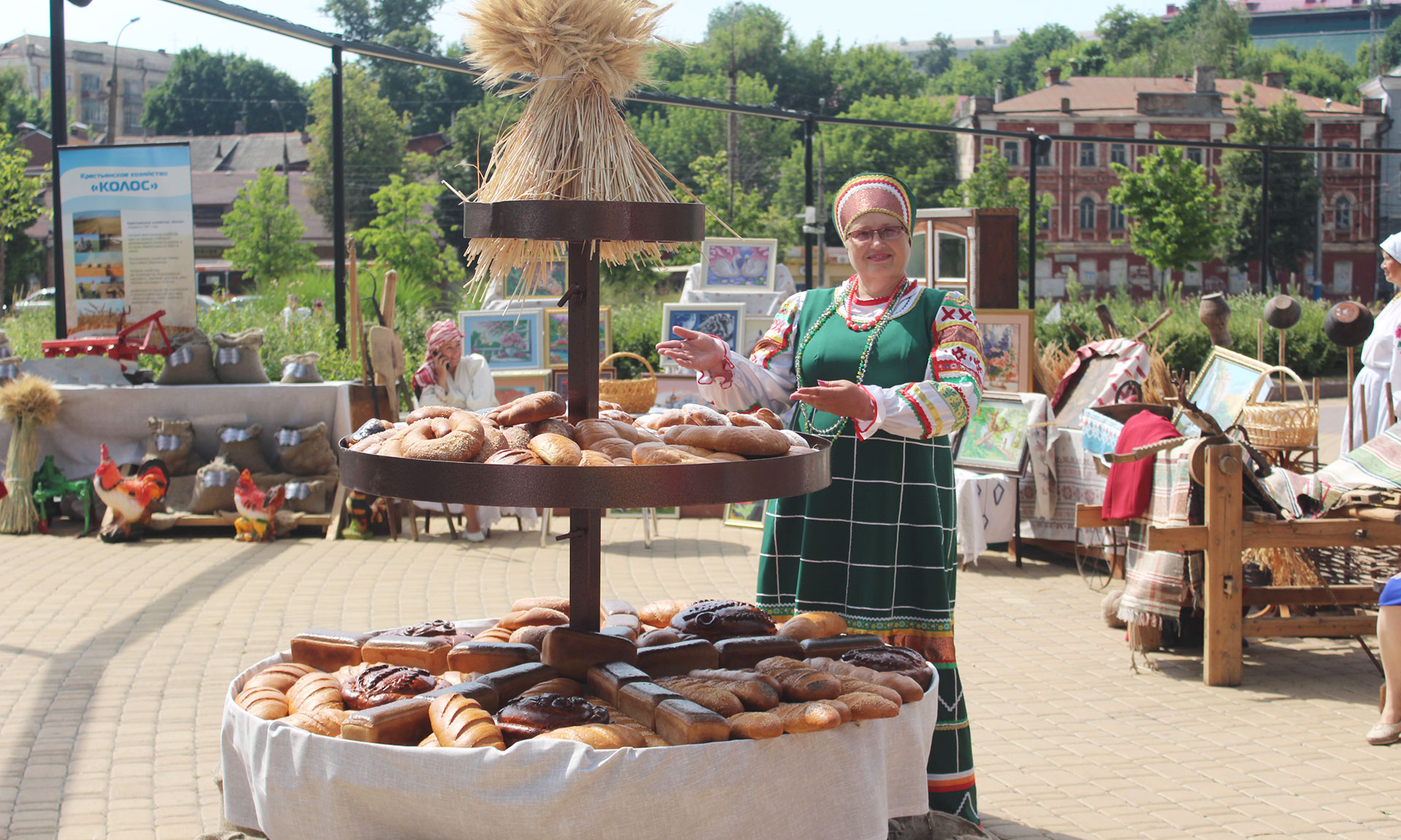 Официальную делегацию, в которую входили депутат Брянской области Владимир Драников, директор департамента строительства Брянской области Галина Солодун, руководитель филиала ФГБУ «Российский сельскохозяйственный центр Брянской области» Александр Фролов, встречали хлебом-солью, с приветственными запевками, в которых гостям желали счастья и благополучия. Гости с удовольствием осмотрели все подготовленные экспозиции: тут и промышленность, и сельское хозяйство, историческая и военная память, творческие составляющие мастеров прикладного искусства. Свою продукцию предоставили Злынковский молокозавод, ООО «Гермес-Дельта», ООО " Каскад» и Хлебокомбинат (ИП Татевин Чопурян). Всех, конечно, привлекала выставка хлебов и булочной продукции. На огромной двухэтажной вазе было представлено более десяти наименований выпечки. Надо сказать, что ИП Татевин Чопурян на производстве хлебобулочных изделий и сухарей на Злынковском комбинате работает с 2018 года. Вся выпекаемая продукция соответствуют регламенту. Хлеб производится из пшеничной муки и смеси ржано-пшеничной муки в широком ассортименте. Предприятие имеет репутацию надежного партнера и всегда радо предложить покупателю новые и качественные виды хлебобулочных изделий. Не смог никто пройти мимо выставки такого предприятия, как ООО Злынковский завод новых технологий по производству вин и напитков «Каскад», который занимается выпуском сидра, пуаре, медовухи и другой безалкогольной продукции. Поставки идут по всей России, Казахстану и Беларуси. Все желающие смогли попробовать квас, пуаре классический, шампань-аsti, вишневый и другие напитки. Сельскохозяйственная экспозиция представлена фермерским хозяйством «Колос». Свою продукцию, а именно пластмассовые изделия для упаковывания товаров предоставило и еще одно злынковское предприятие ООО «Гермес-Дельта». ООО «Злынковский молочный комбинат» также привез на фестиваль свою продукцию: молоко пастеризованное, жирностью от 1,5% до 3,6%, кефир жирность от 1,5% до 3,2%, сметану жирностью от 15% до 20%, и творог фермерский жирностью 9%.