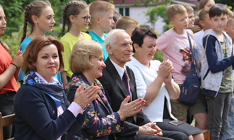 После праздничной линейки Василий Семенович Лановой рассказал ребятам о своей творческой биографии. Вспоминались роли в театре и кино, вместе с «Ровесниками» народный артист пел всеми любимые песни из знаменитых кинофильмов, читал свои любимые стихи, вспоминал детские годы, и тяжелые дни, проведенные во время оккупации. Ребята с воодушевлением ловили каждое слово Василия Семеновича и долго не хотели его отпускать со сцены!