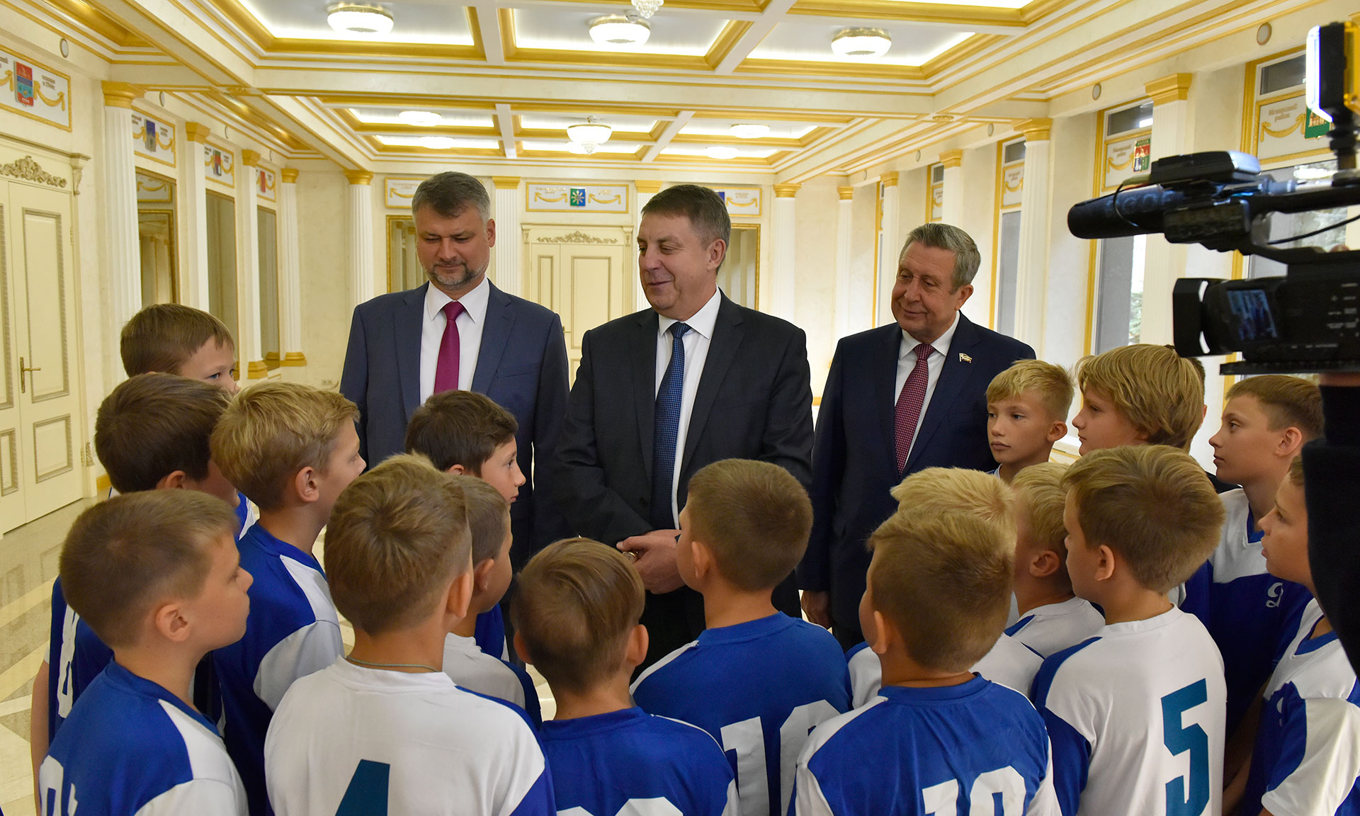 По доброй традиции, сложившейся на территории Брянской области, накануне замечательного праздника — Дня физкультурника участники торжества собрались, чтобы поприветствовать представителей сферы физической культуры и спорта региона. Но вначале состоялась встреча руководителей области с юными футболистами.