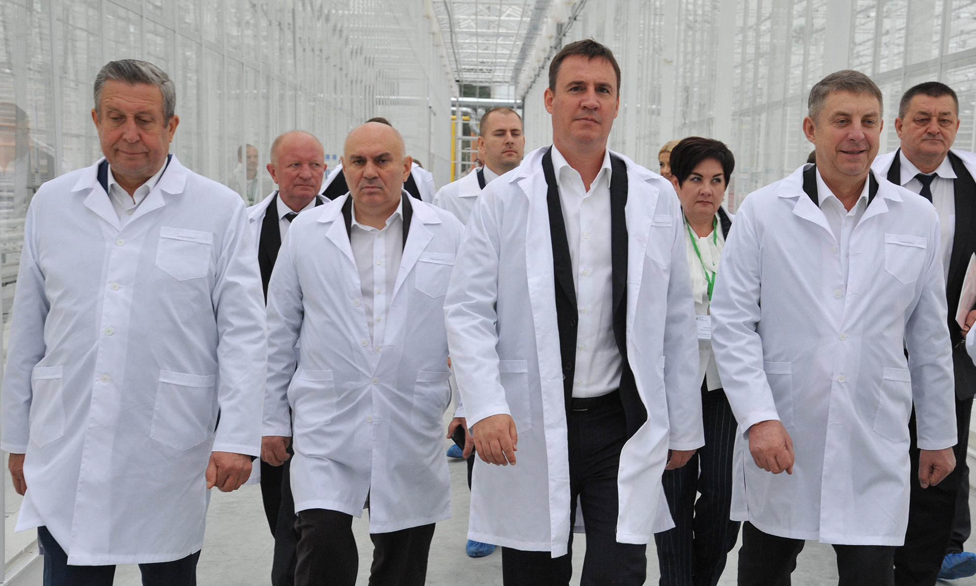 Он провел для почетных гостей экскурсию по предприятию. Министр сельского хозяйства РФ Дмитрий Патрушев и Губернатор Брянской области Александр Богомаз ознакомились с технологией процесса производства овощей и внесли свой вклад в будущий урожай — посадили семена помидоров черри.