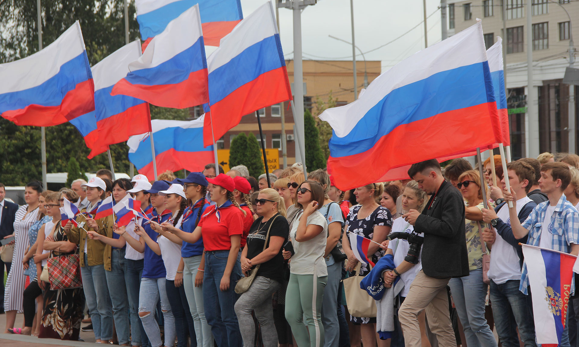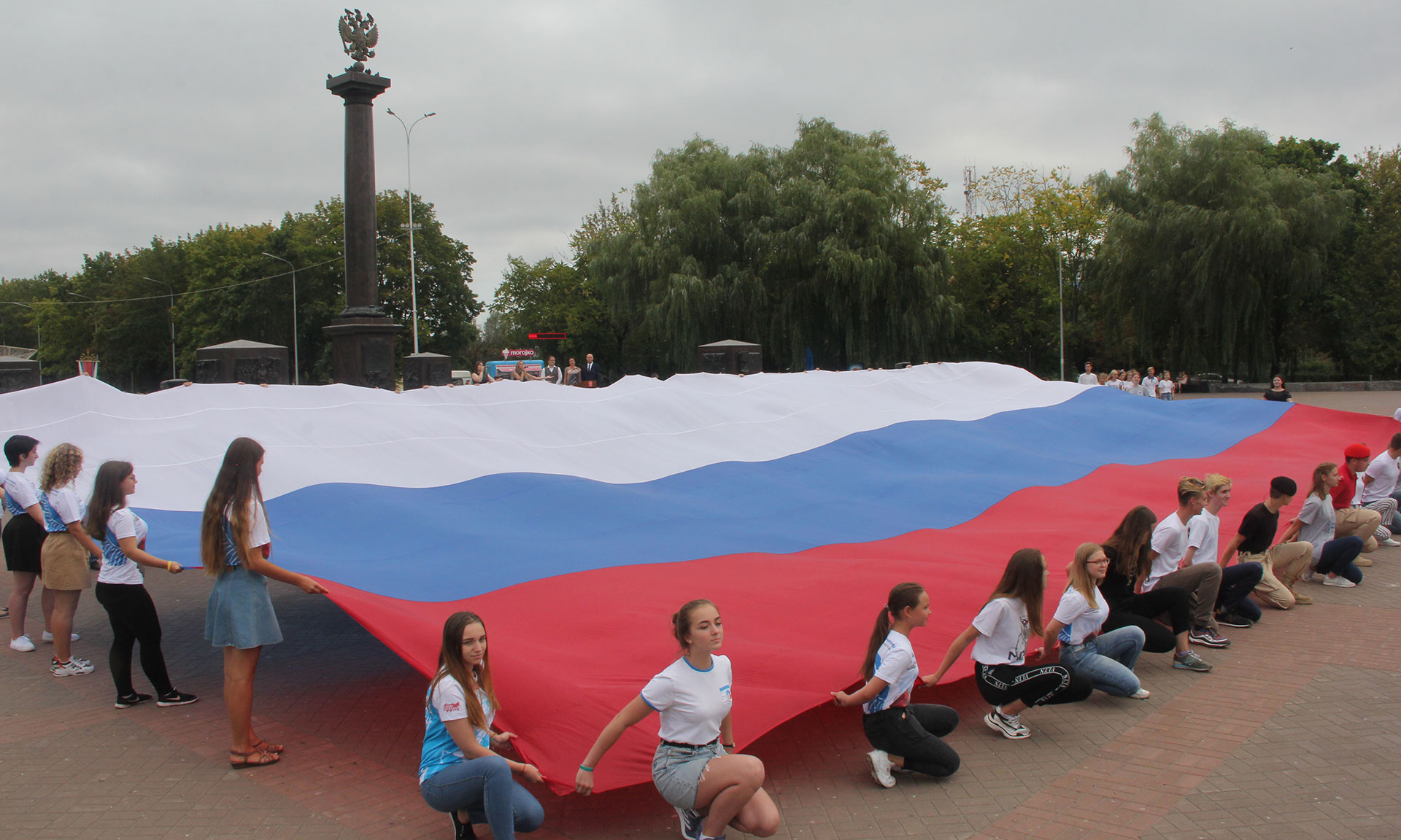 22 августа в России отмечается День государственного флага Российской Федерации. В Брянской области в рамках торжественного мероприятия, посвященного этому знаменательному событию, активисты молодежных организаций развернули на площади Воинской славы огромную копию Российского триколора, прозвучал гимн Российской Федерации.