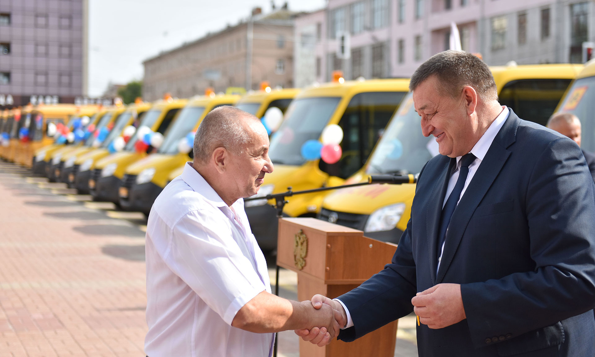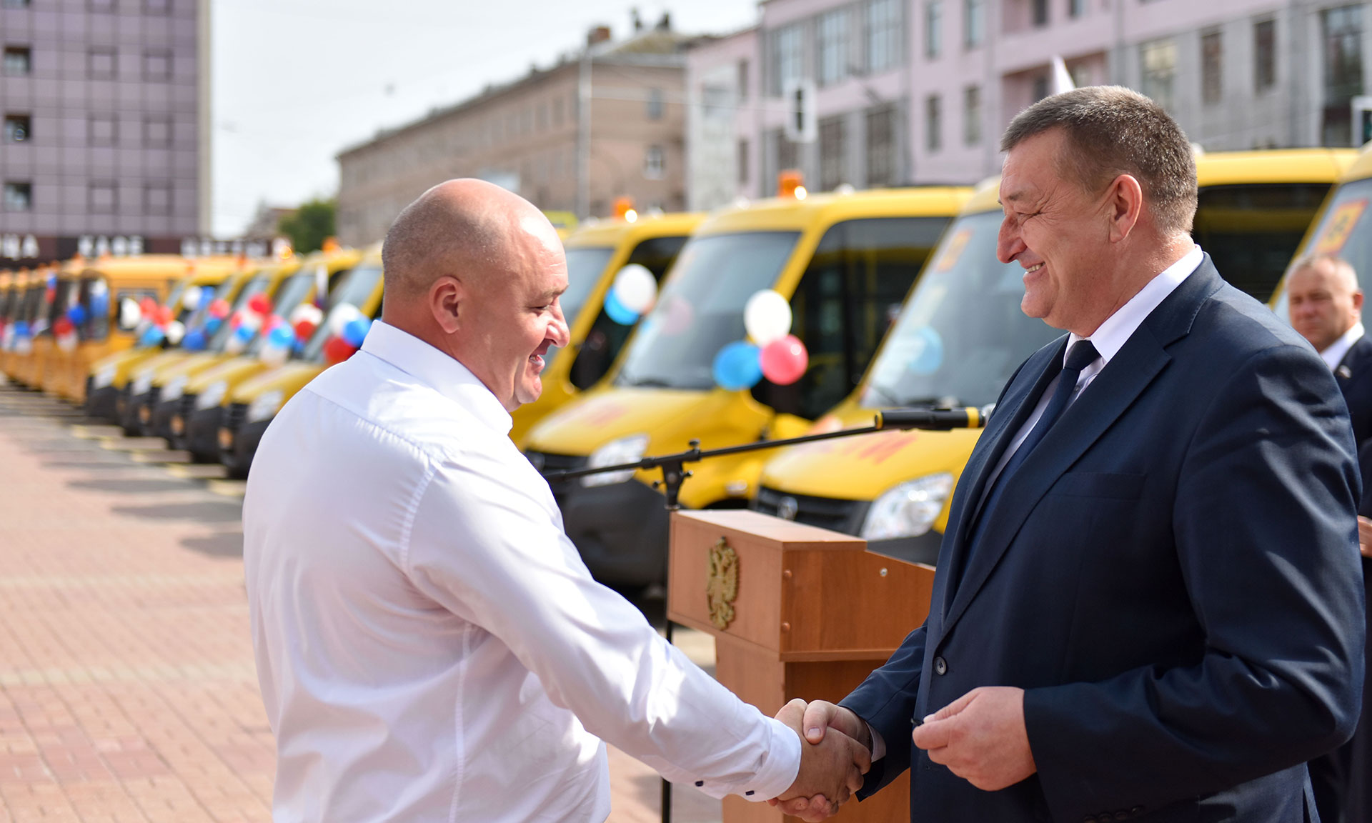 На торжественной церемонии вручения школьных автобусов присутствовали Губернатор Брянской области Александр Богомаз; председатель Брянской областной Думы Владимир Попков; главный федеральный инспектор по Брянской области Андрей Дьячук; депутаты Государственной Думы Федерального Собрания Российской Федерации Валентина Миронова и Валентин Суббот, вице-губернатор Брянской области Александр Резунов, заместитель Губернатора Брянской области Владимир Оборотов, директор департамента образования и науки Татьяна Кулешова, руководители города Брянска, председатели комитетов и депутаты Брянской областной Думы, руководители исполнительных органов государственной власти, руководители муниципальных образований Брянской области, руководители образовательных организаций.