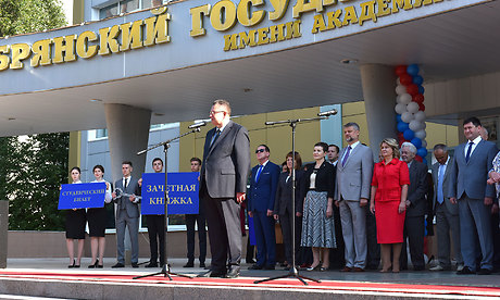 — Дорогие ребята! Сегодня вы вливаетесь в замечательную семью Брянского государственного университета — университета, который славен своими традициями и своей такой сильной научной школой, своими талантливейшими преподавателями.