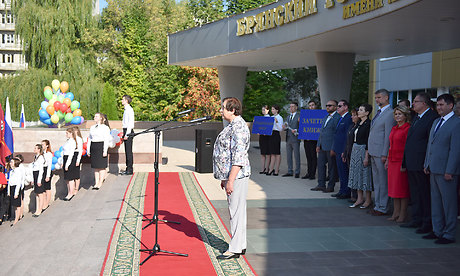 — Добрый день, дорогие друзья! Я рад приветствовать студентов, профессорско-преподавательский состав, родителей в этот замечательный праздник от имени полномочного представителя Президента России в Центральном Федеральном округе Игоря Олеговича Щеголева.