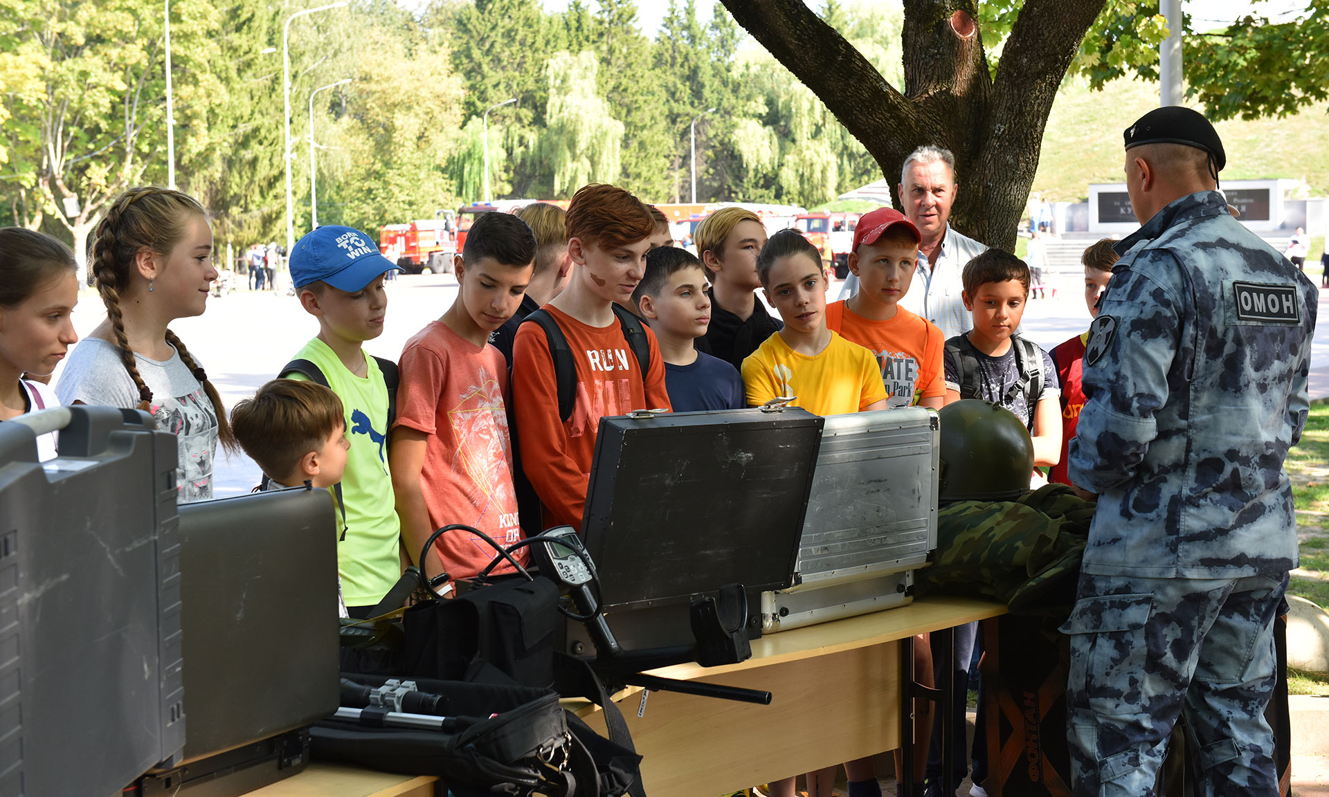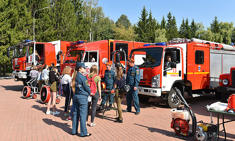 Ребята увидели технику и оборудование пожарно-спасательных подразделений, показательные выступления кинологического расчета, приемы и способы дрессировки собак, познакомились с учебно-материальной базой Учебно-методического центра по ГОЧС Брянской области, стендом по вопросам оказания первой помощи пострадавшим.
