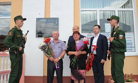 Право открыть памятную доску, размещенную на фасаде здания школы, было предоставлено родителям Дмитрия Соловьева, заместителю Губернатора Александру Коробко и главе администрации района Александру Сысоеву.