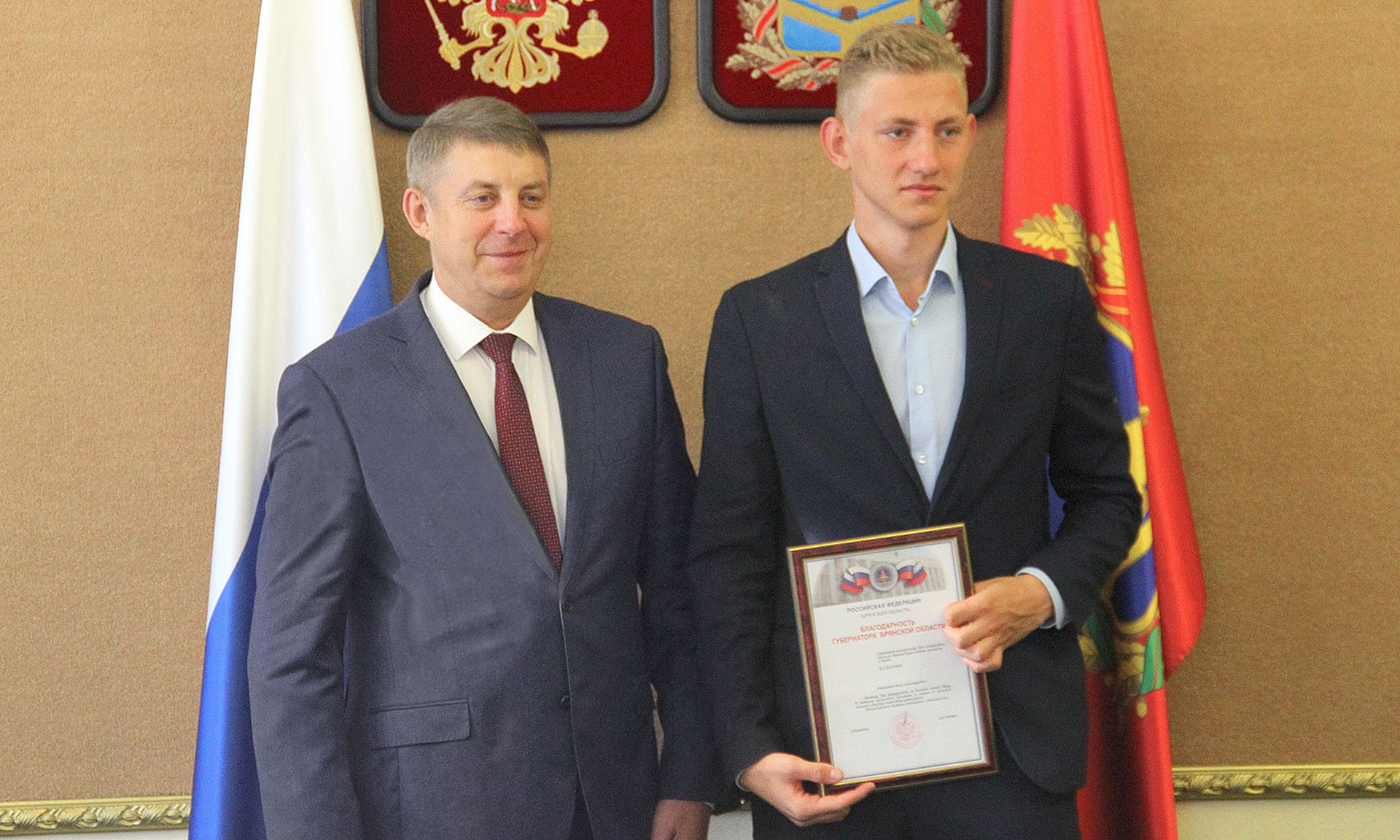 11 сентября состоялась встреча Губернатора Брянской области Александра Богомаза с мастером спорта России по плаванию, серебряным призером первенства мира по плаванию Ильей Бородиным.