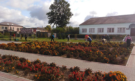 Вышли на субботник и работники районной библиотеки. С любовью и заботой обихаживают они цветник перед библиотекой. Пропалывают, окучивают, подвязывают. В любую пору он радует глаз горожан яркими сезонными цветами. Всегда ухоженный и красивый. Находясь в центре города, палисадник является несомненным украшением Жуковки.
