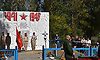 Почетный караул внес копию знамени Победы. Прозвучал гимн Российской Федерации.