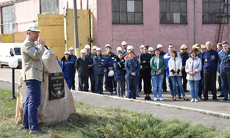 — Сегодня важная дата в истории Брянской области — 76-я годовщина освобождения Брянска и Бежицы от немецко-фашистских захватчиков. Работники нашего завода в годы Великой Отечественной войны также участвовали в общем деле — борьбе с врагом: трудились на эвакуированном производстве, сражались на фронте, не давали спуска оккупантам в партизанских отрядах. Мы помним об их подвигах и гордимся ими. И этот памятный камень — дань нашего уважения к заводчанам, которые ковали Великую Победу.