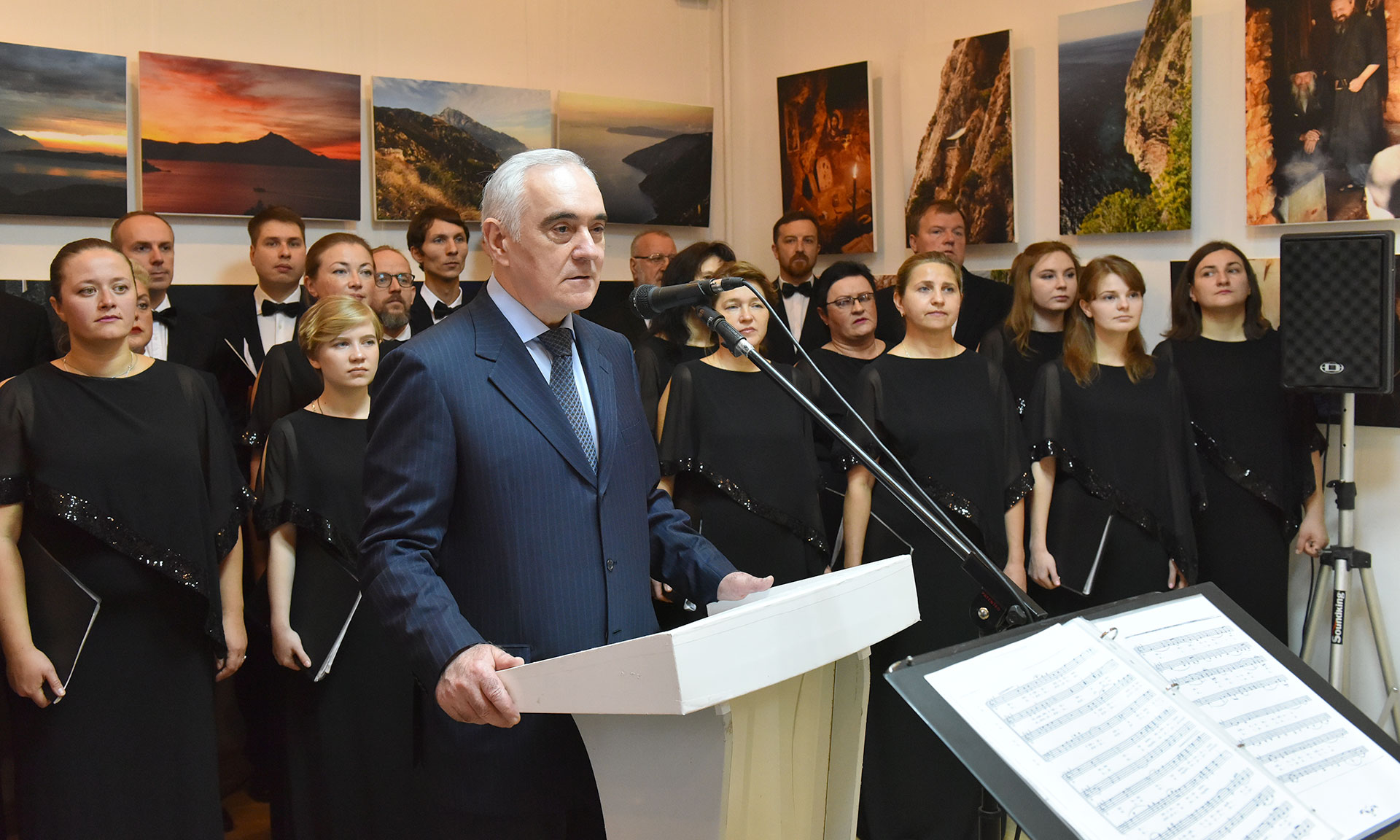 — Уважаемые друзья! Сегодня действительно торжество торжеств. Очень приятно, что в нашем Центральном федеральном округе открывается такая великолепная выставка нашей российской истории «Наш Афон». Мы сделали первые шаги по выставочному залу, и с первыми шагами увидели, насколько художник, фотограф, я бы сказал ученый Костас, действительно любит это ремесло. Человек, который живет этой выставкой и нашей историей, сохраняет ее для нас, для нашей России.