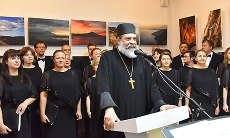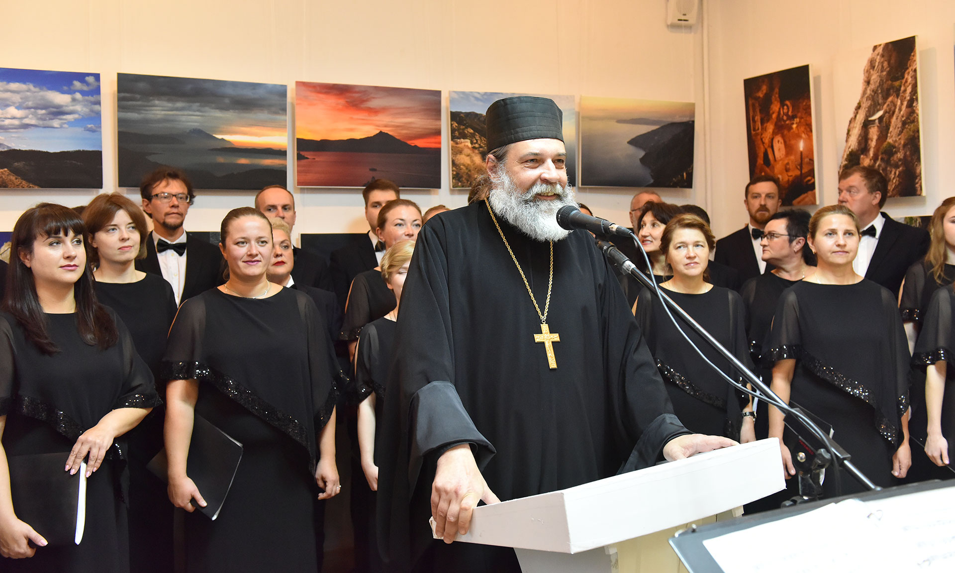 Автор выставки, греческий фотохудожник, представитель русского на Афоне Свято-Пантелеймонова монастыря Костас Асимис поблагодарил всех, кто пришел на выставку, и провел экскурсию по выставочному залу.
