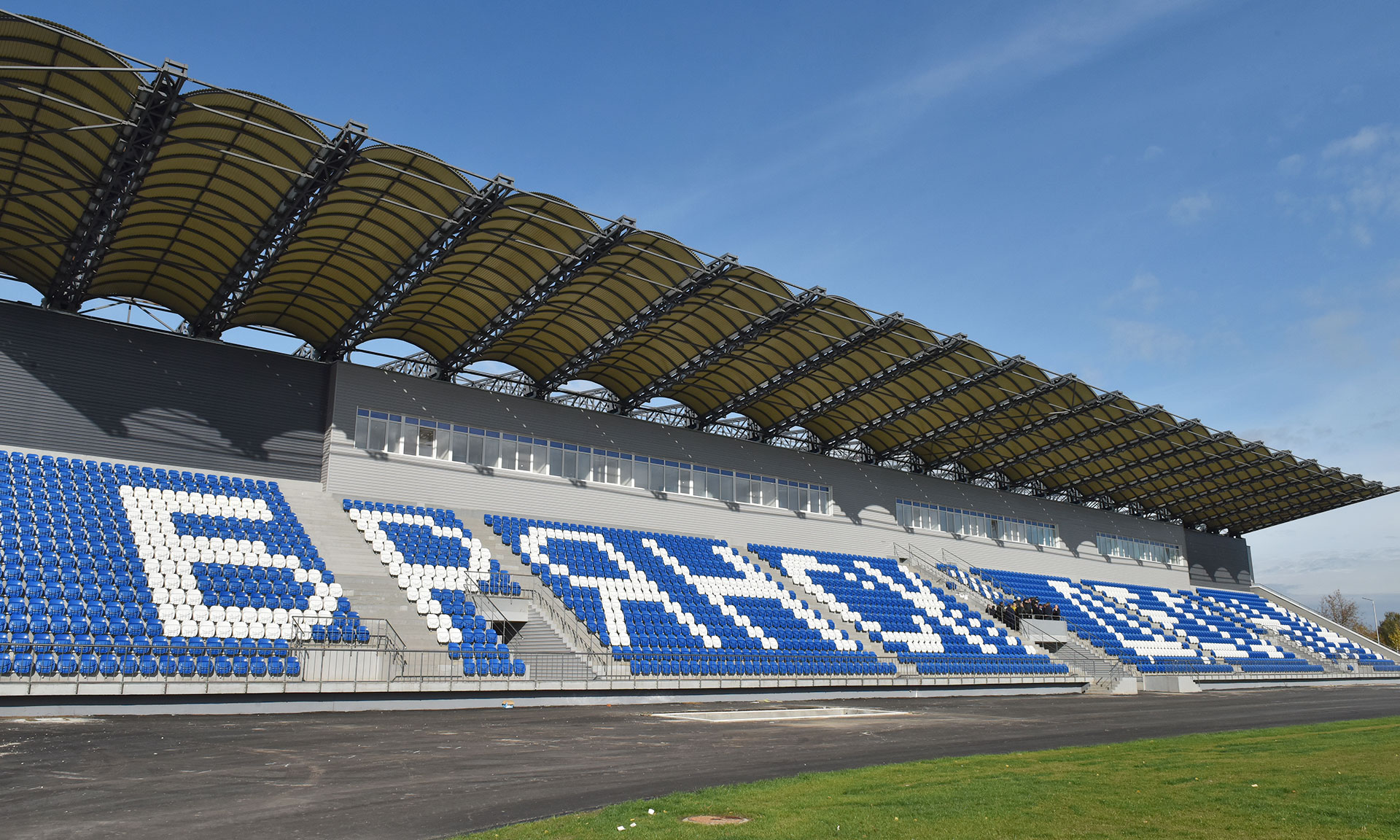 От объектов здравоохранения — к спортивным сооружениям. Реконструкция стадиона «Десна» в Бежицком районе ведется в рамках реализации федеральной целевой программы «Развитие физической культуры и спорта Российской Федерации на 2016–2020 годы», в нее вошли всего десять объектов по всей стране на условиях софинансирования (70% — федеральный центр, 30% — региональный бюджет). В рамках первого этапа ведется реконструкция существующего спортивного ядра: возведены трибуны на 3000 зрителей с комплексом инженерных сетей, установлена блочная котельная, выполнено основание под укладку спортивного покрытия, покрытие беговых дорожек, на футбольном поле — натуральный газон, продолжается благоустройство территории. В ближайшее время планируется приступить к укладке спортивного покрытия «MONDO».