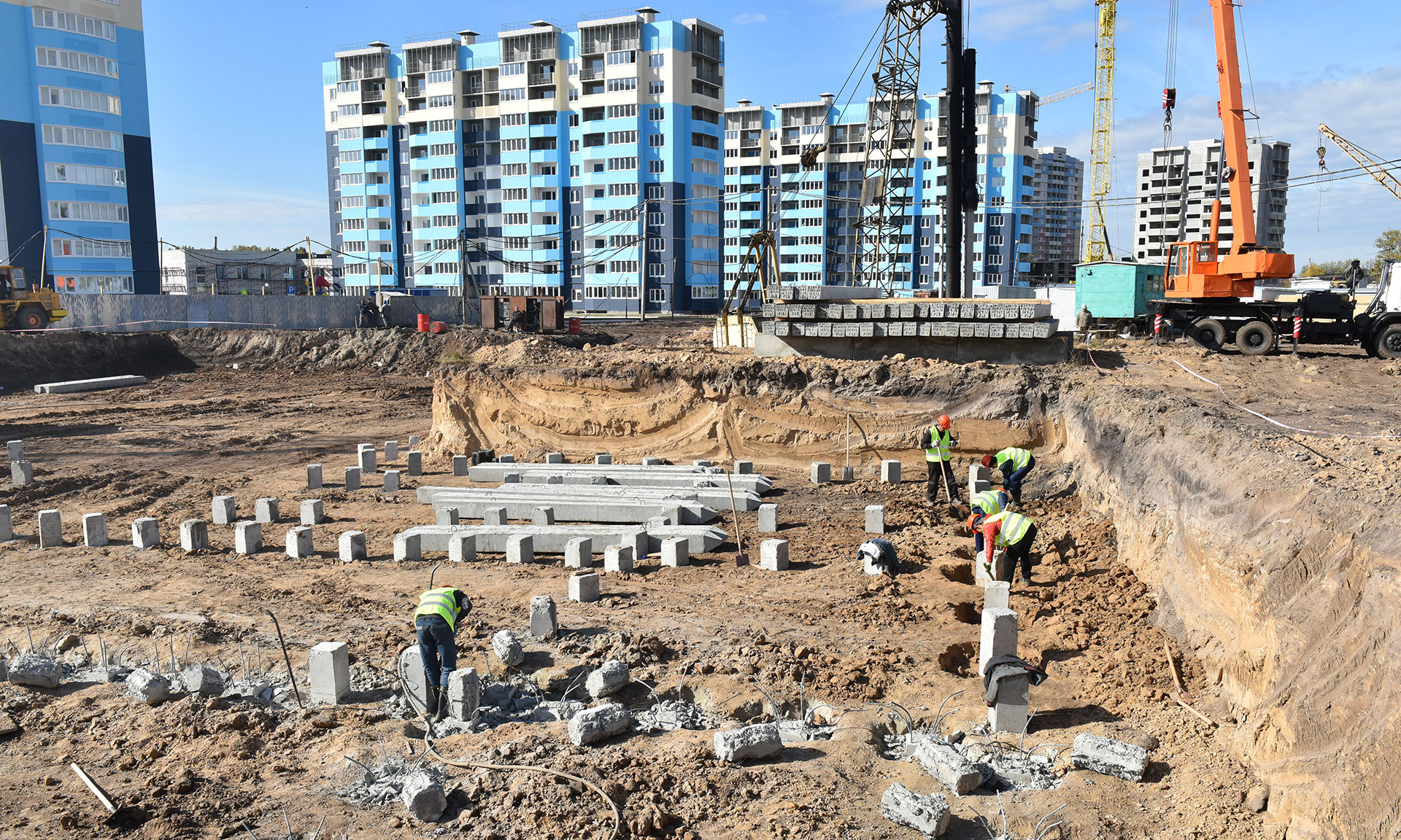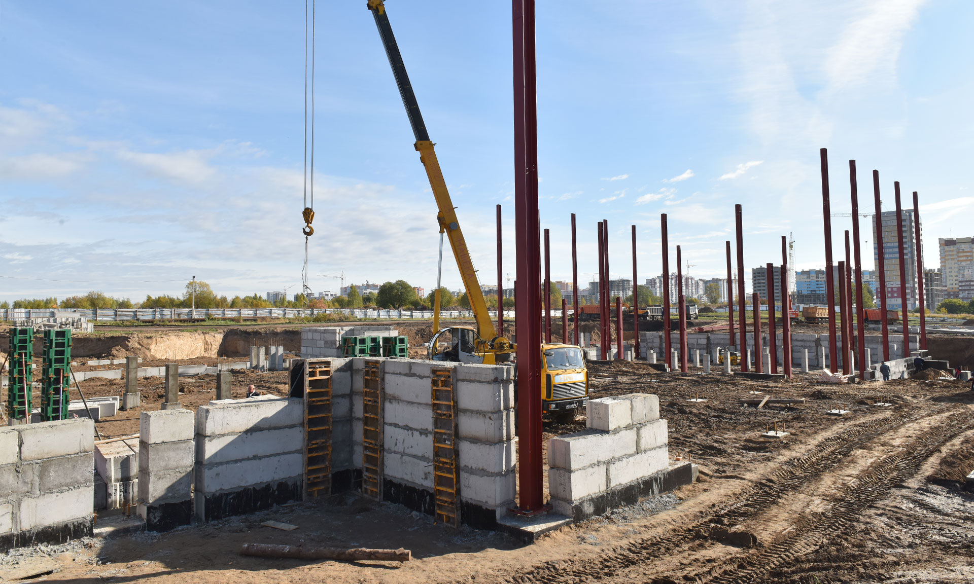 Здание школы — четырехэтажное, в котором разместится несколько функциональных блоков: блок начальных классов, спортблок, общественная зона, пищеблок, административная зона. Срок ввода школы в эксплуатацию — июнь 2020 года. Здесь выполняются работы по возведению монолитного каркаса, электромонтажные и сантехнические, прокладываются сети водо- и теплоснабжения, выполнено устройство чаши бассейна.